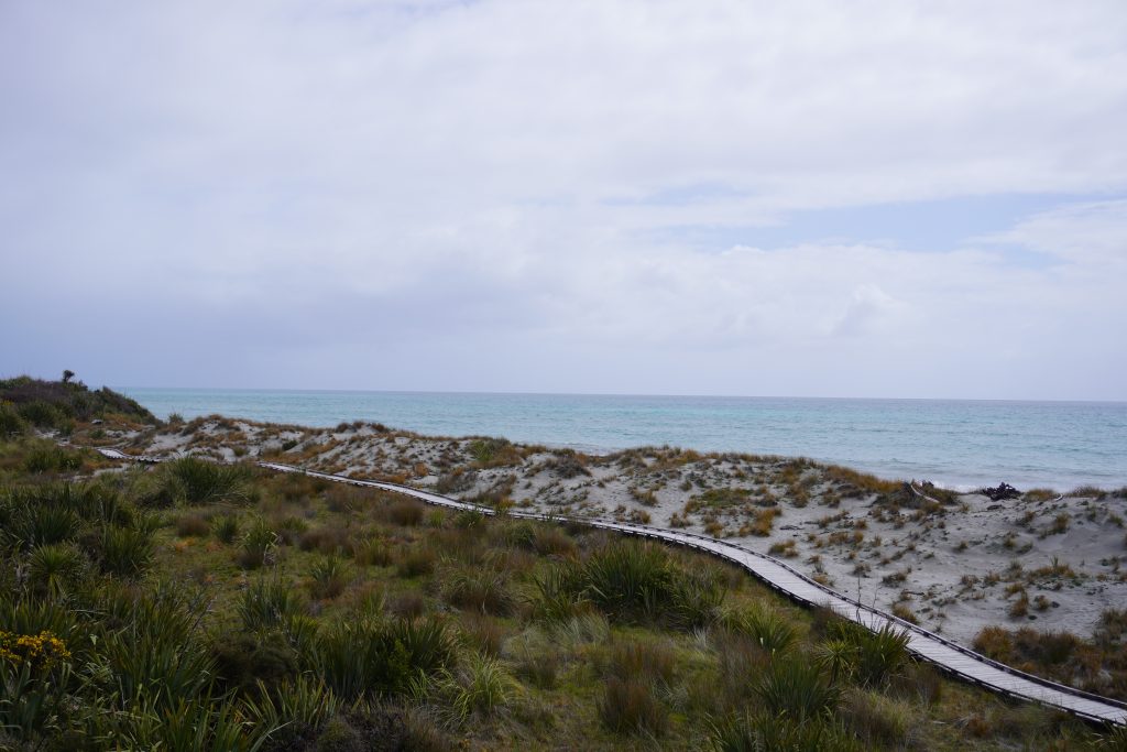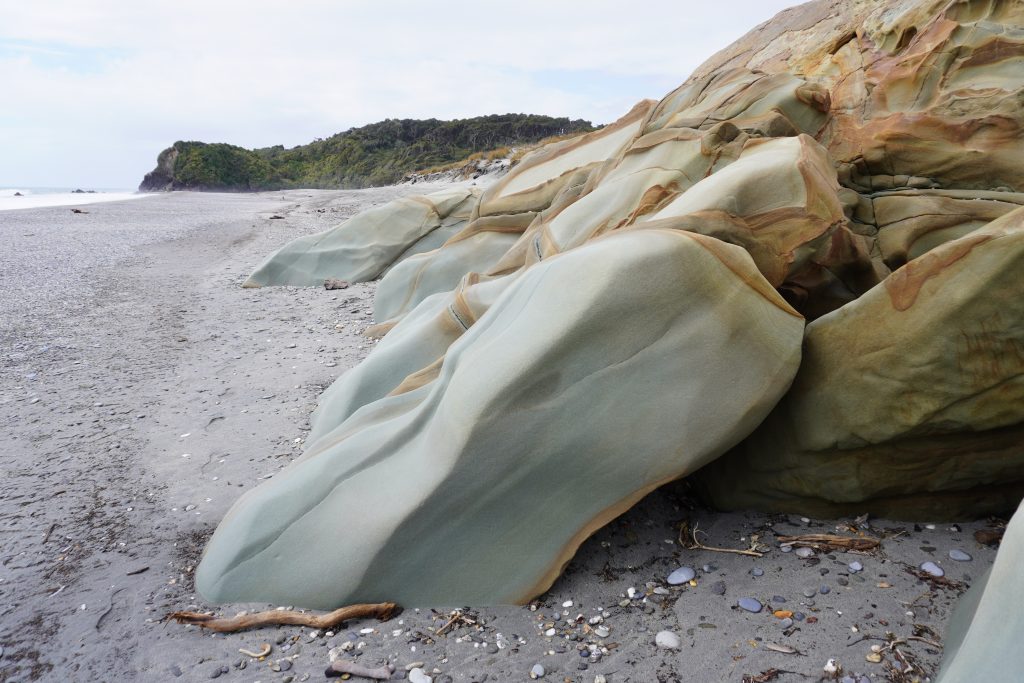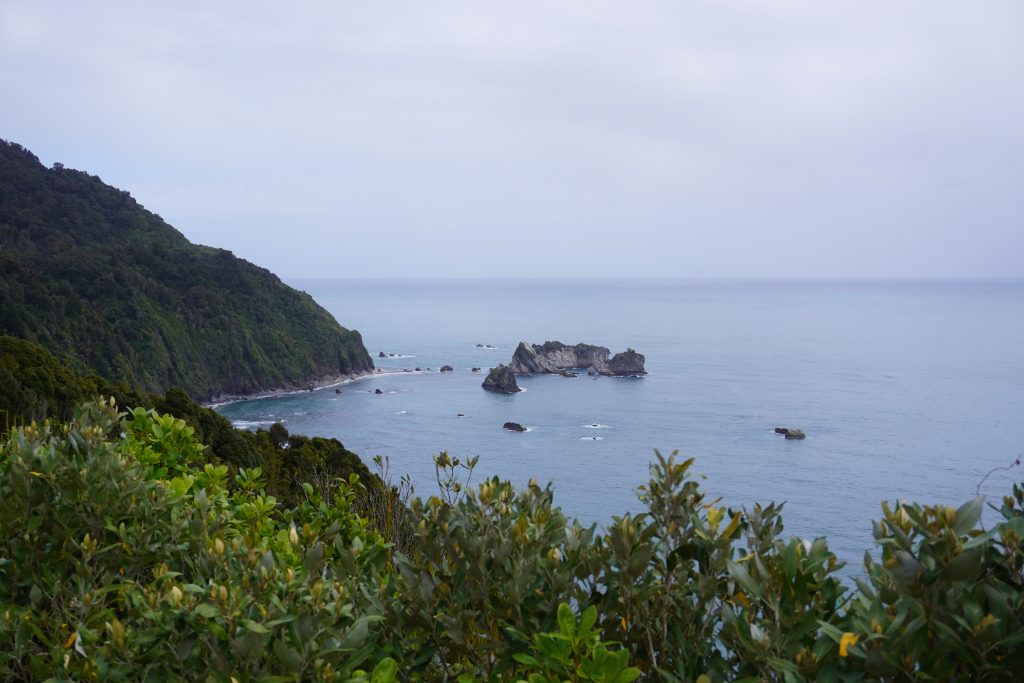 … along some more beautiful beaches in Bruce Bay and also the Ship Creek river, which leads into a swamp and forest area. It is named that way because in the 1870s a part of a wrecked ship’s hull was found there. The ship was the Schomberg. A clipper on its maiden voyage from Liverpool to Melbourne. It ran aground the Shipwreck Coast and the piece drifted 2’000km across the Tasman Sea.